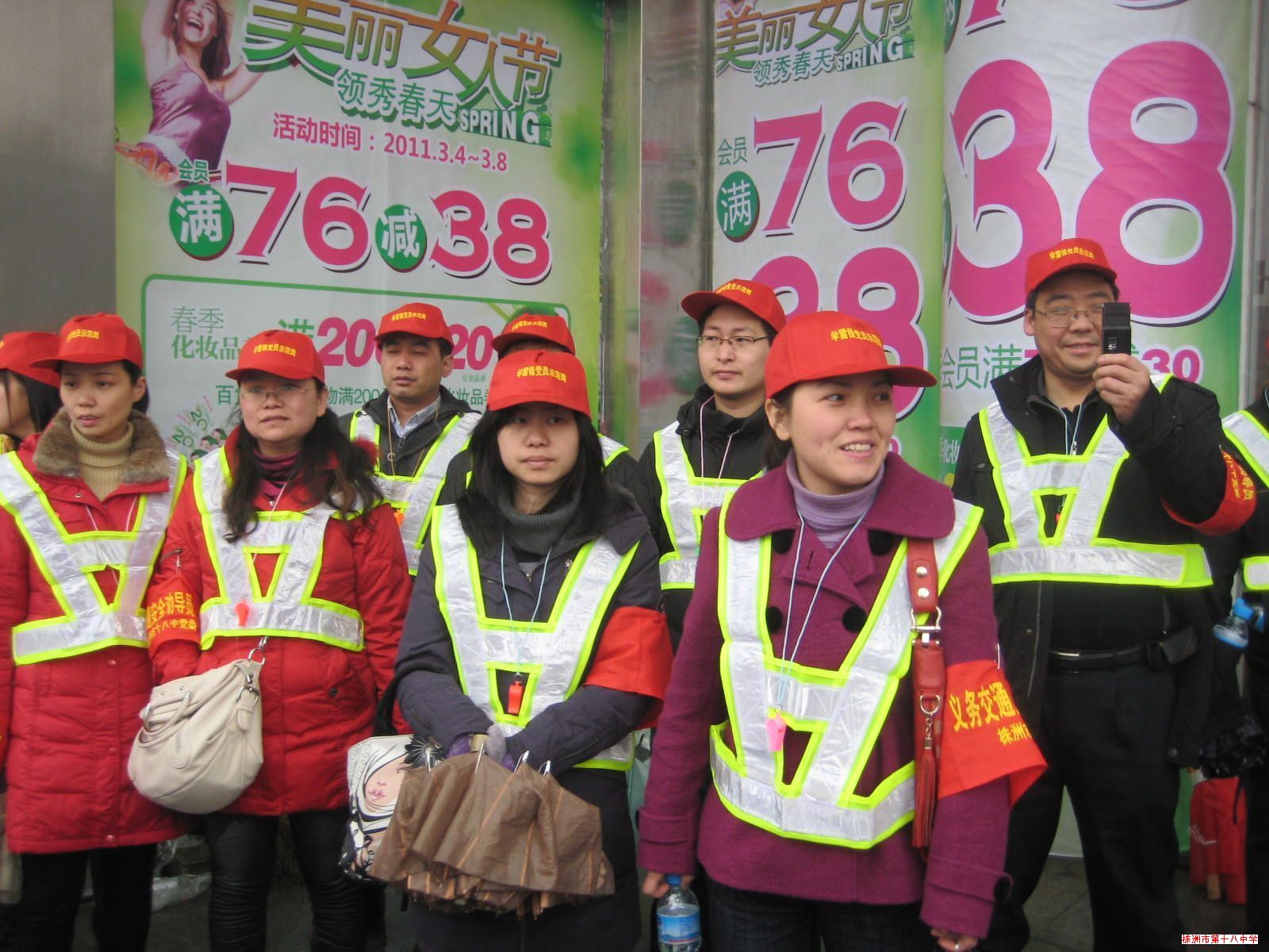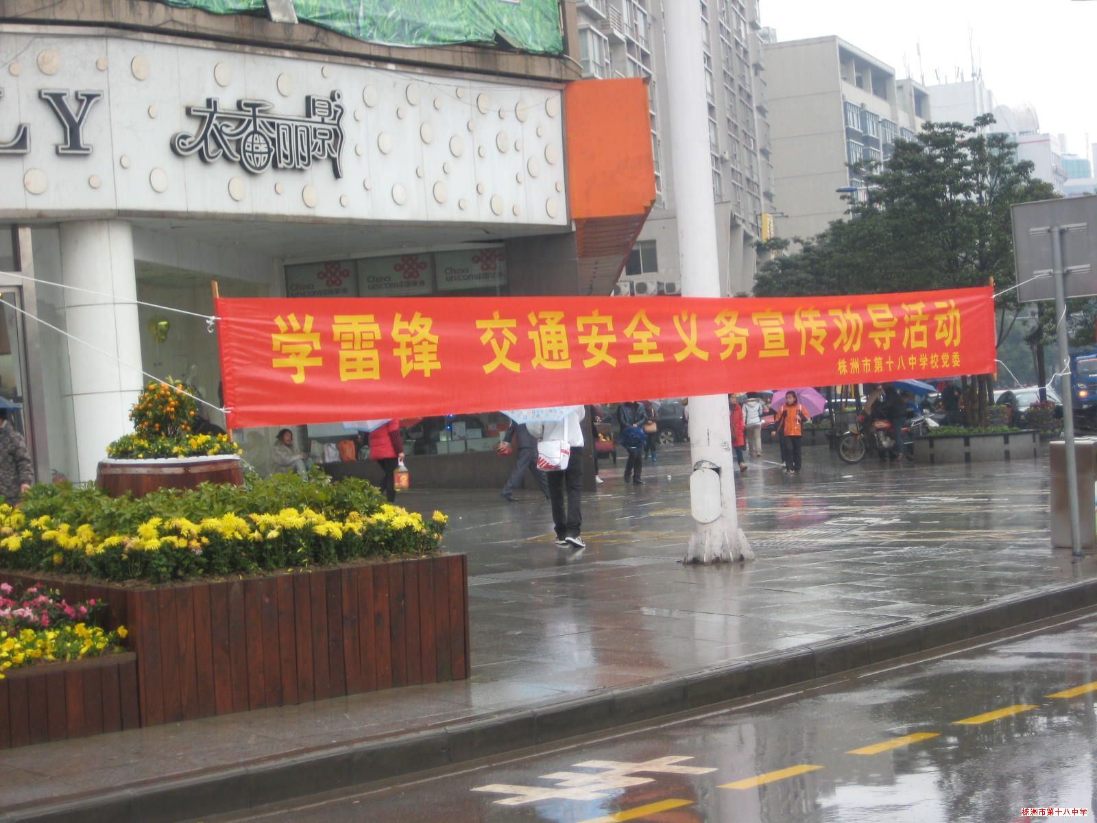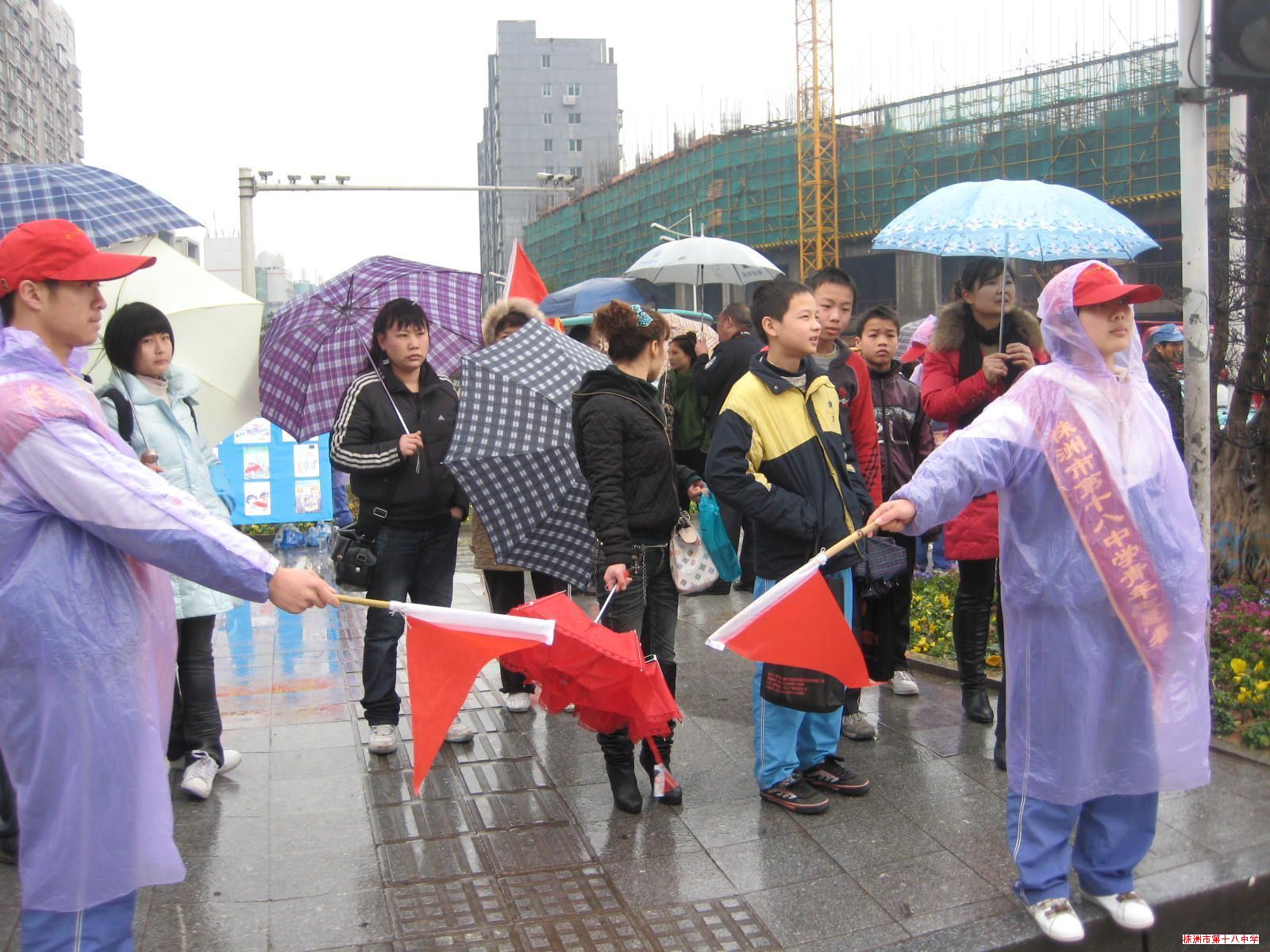 3月6日上午,由校党委组织,高三支部承办的以“学雷锋精神,倡文明出行”为主题的“义务交通劝导员”活动,在红旗广场顺利展开。