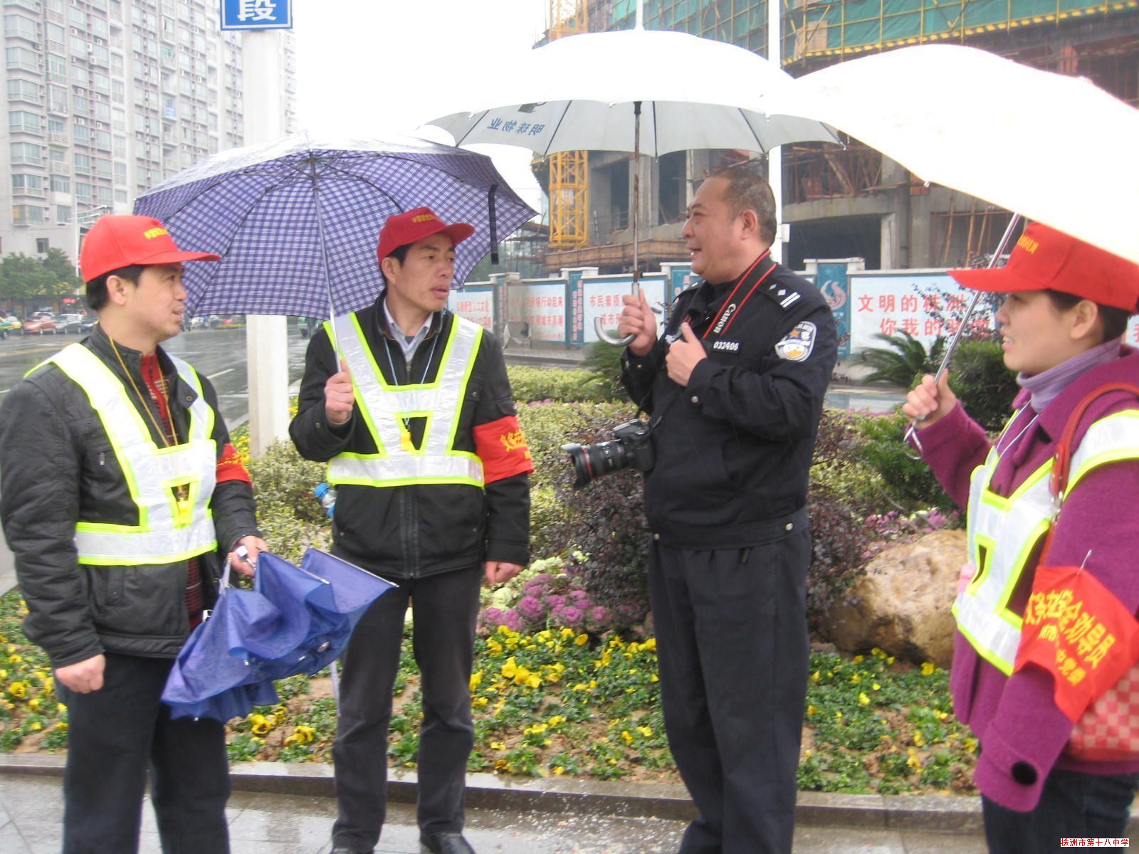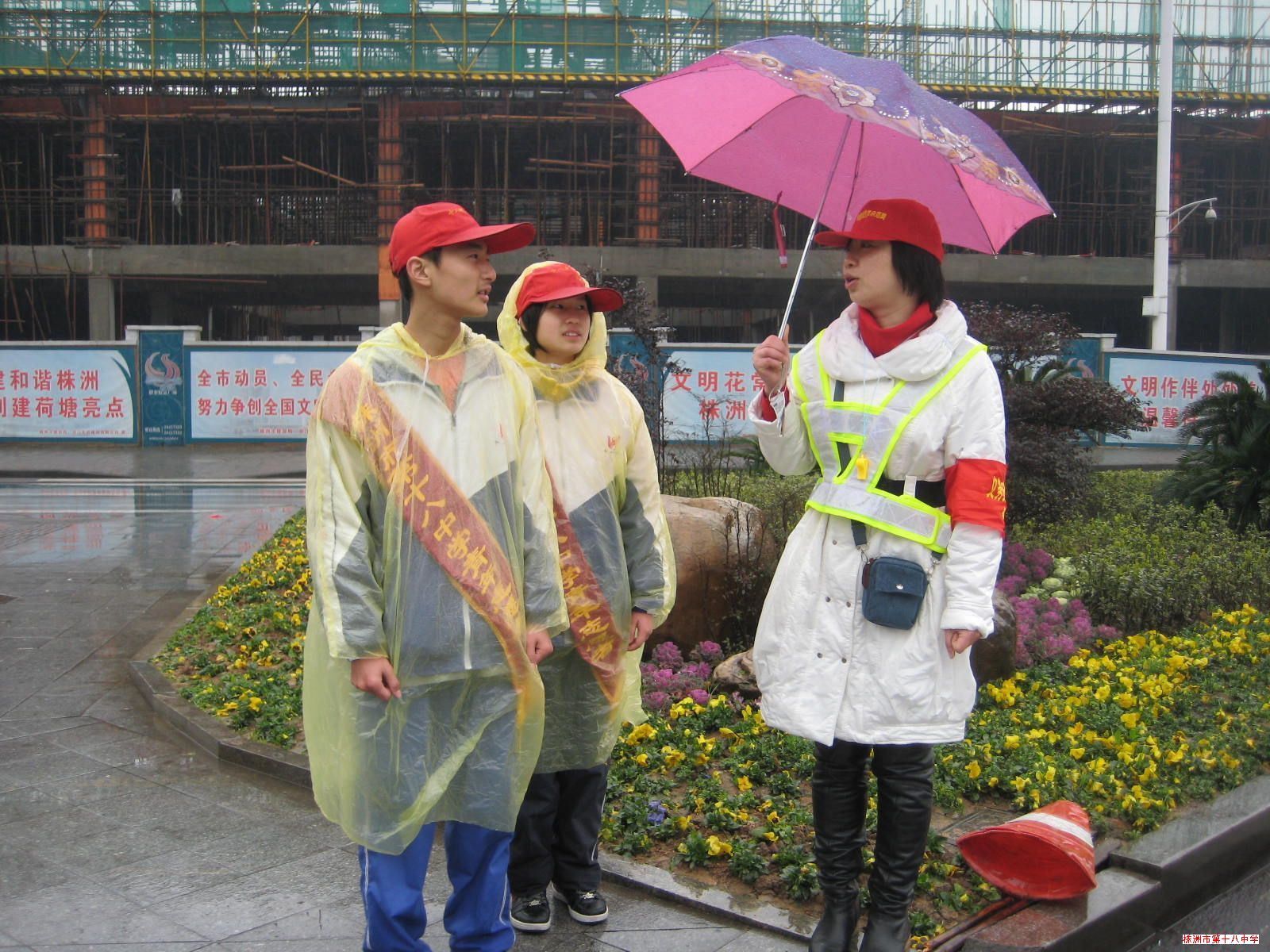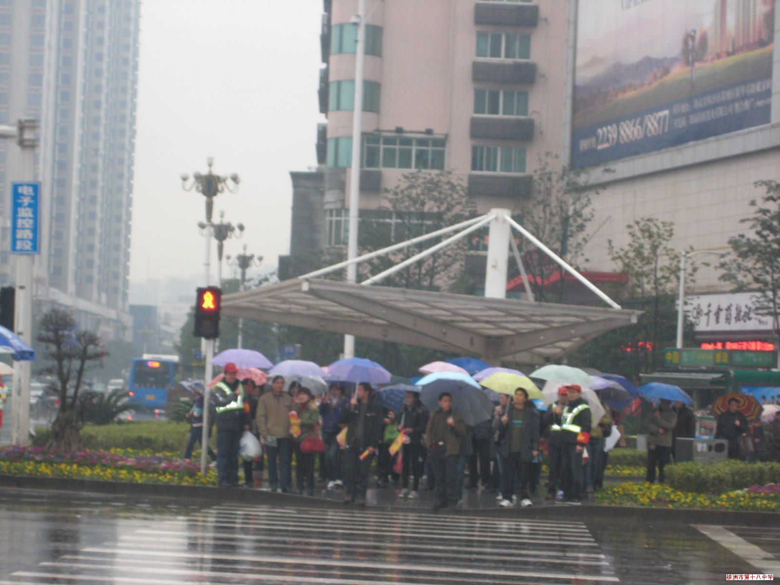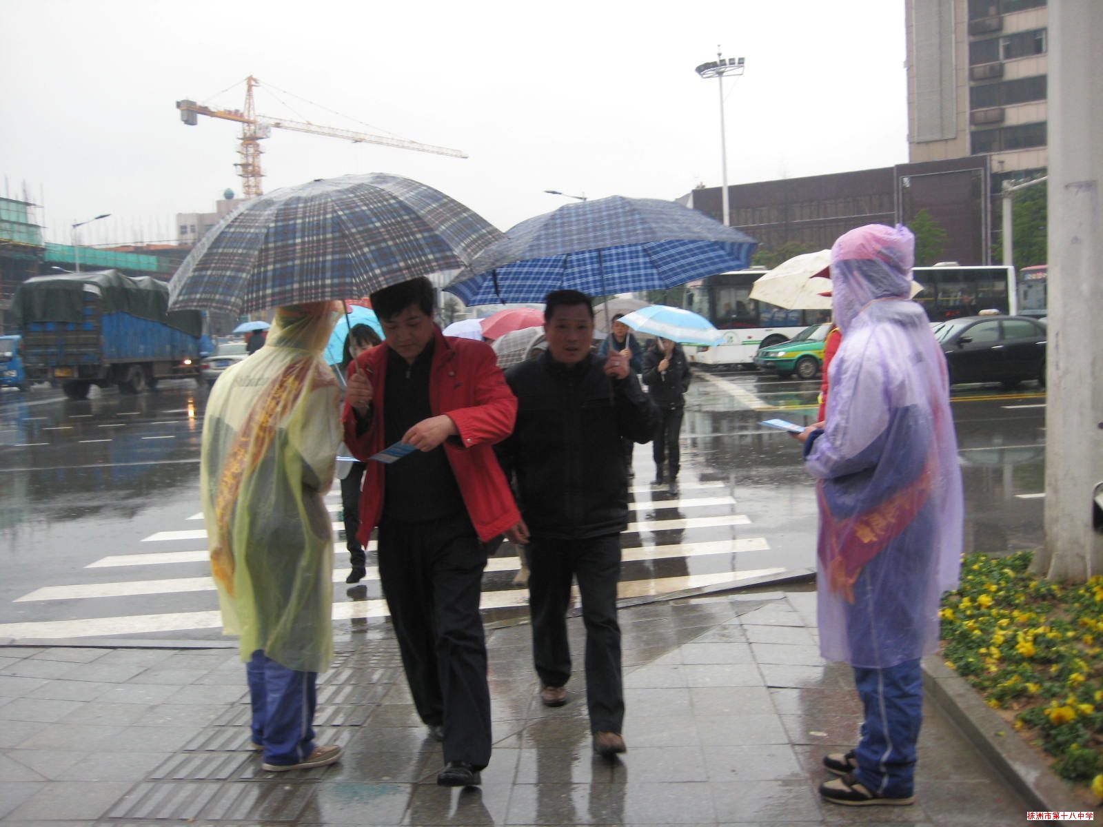 高三支部的二十名党员及十名入党积极分子冒雨走上街头,实践自己在创先争优活动中服务社会的承诺,通过协助交警维护交通秩序,进行非机动车、行人的交通安全劝导,开展交通安全宣传,向市民发放交通安全宣传资料,举行交通安全漫画展览等活动,切实为“文明参与交通,共建美好家园”贡献自己的一份力量。
