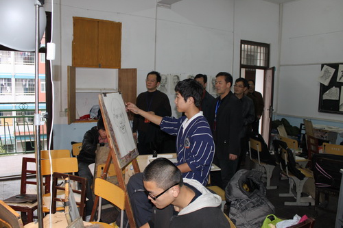 市教育局局长钟燕,副局长李建国、徐晓芳,纪委书记晏贤明等领导陪同葛厅长一行饶有兴趣地参观了十八中校园和学校艺术楼,对学校的优美的环境、美术特色建设和有序管理表示赞许。