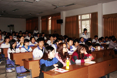 学生认真听取嘉宾晏茜同学的心得体会