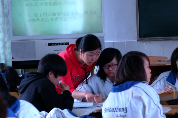 黄静老师来到学生中间悉心指导