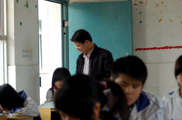 高一级部长杨铁军到各教室巡视,检查各考场纪律