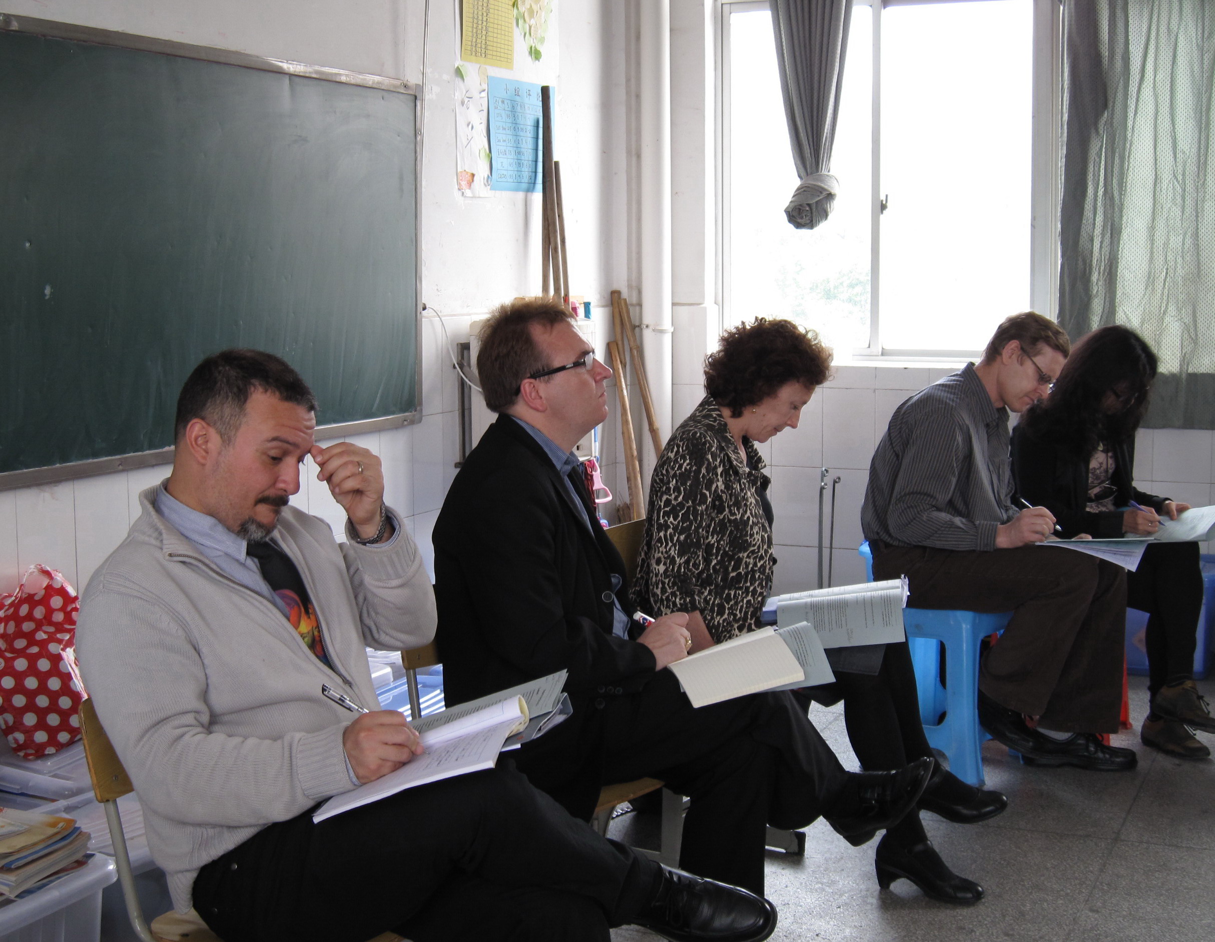 2011年5月26日星期四下午,在教科室刘蔚华主任的陪同下,来自英国威尔士大学的教授走进了我校的英语课堂。