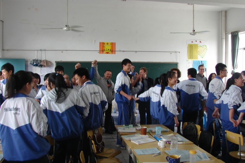 第一节课,威尔士大学教授们听取了倪秀丽老师组织高二228班学生开展的关于"The Olympic Games"话题的一堂课。这堂课设计环节新颖,流程紧凑。在倪老师的带领下,课堂上掀起了一个又一个高潮,其中包括学生充当小记者现场采访威尔士大学教授们。最为精彩的莫过于学生邀请威尔士大学教授们一起唱"hand in hand"这首歌。手挽手,忘记了国籍,忘记了师生,只有一个梦想"hand in hand we are together",课后教授们都不禁竖起大拇指夸我们的学生大方,可爱。第二节课,大家听取田玉娇老师的一堂关于"environment"话题的课,融洽的课堂氛围和孩子们精彩的表现给客人及老师们留下了难忘印象。