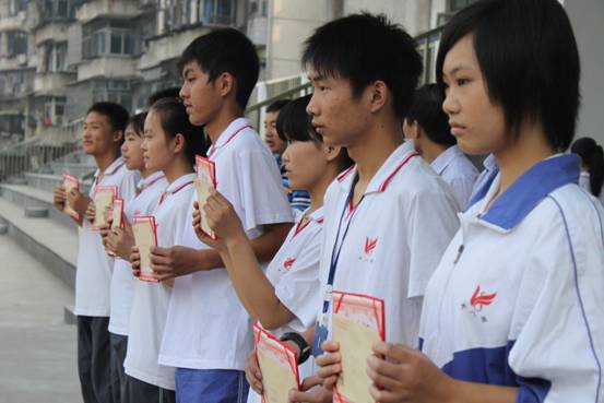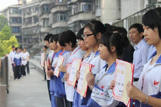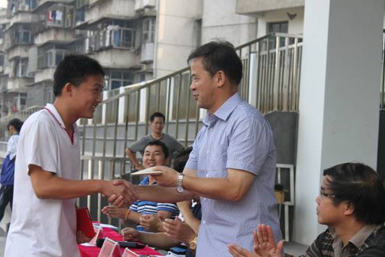 获校长特别奖的高三刘全同学在接受校长颁奖