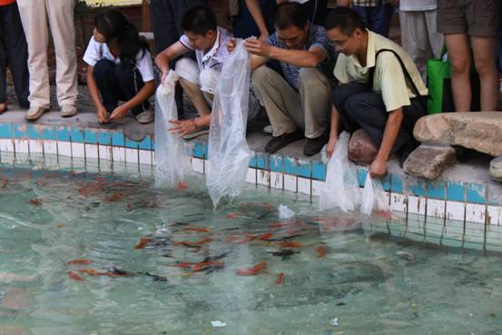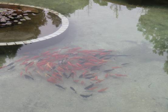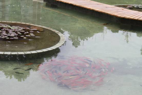 株洲市第十八中学文化园——和园已经改造完毕,和园美不胜收。一池碧水,一泻瀑布,几处灵灵睡莲,一弯小桥,和园便端庄的立在人们眼前。亭台楼阁错落有致,树影婆娑,奇葩争妍,天光云影徜徉其中,和园更见风致。园中鸟谈天,可怎觉少一分滋味。正好今日学校在荷池放养各类观赏鱼。鱼跃水中,欢蹦乱跳,莲花苏醒鱼儿戏。清清的湖水,五颜六色的小鱼,欢声扑面的笑脸,远处琅琅书声都腾结一起。整个校园都鲜活起来!