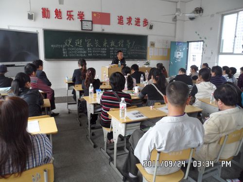 今天下午二点半,高二级部成功召开学生家长会。在会上,首先由教务科副科长文新岳发言,说明学业水平测试的重要性,希望家长重视,积极配合学校鼓励学生努力学习,在明年的学业水平测试中取得优异的成绩。随后,级部长杨铁军从四个方面向家长汇报了高二年级的整体情况。接着由各班班主任主持,在教室与家长就学生近段时间的表现进行了沟通。