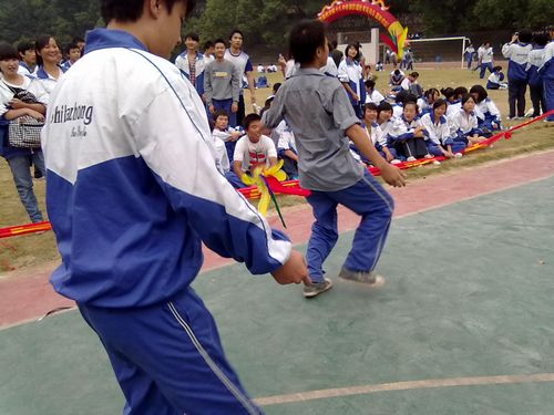 昨天下午校运会运动场上进行了跳短绳、踢毽子比赛。每班男女各四人,分年级班级进行,最后结果是:跳短绳男生245班彭子洲以一分钟217个居第一位,女生是248班周星星,183个;踢毽子男生是249班于浩男以两分钟161个取胜,女生是241班易莹,143个。以下图片是跳短绳、踢毽子比赛片段。
