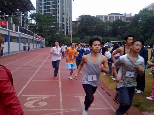 今天上午九点四十分进行了男子1500米预决赛,246班刘畅同学夺得第一名。