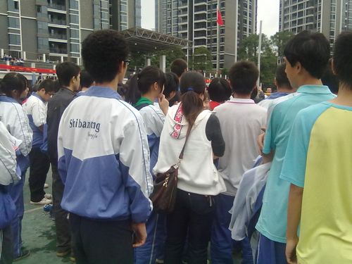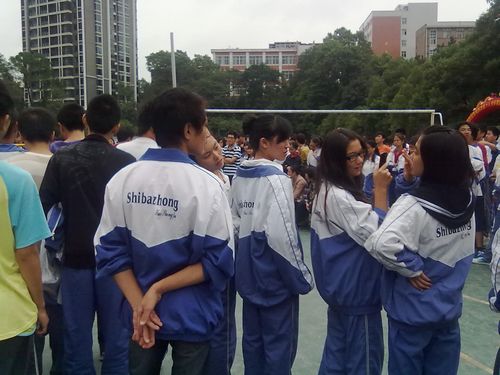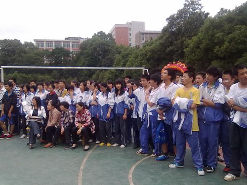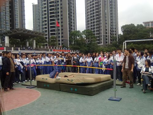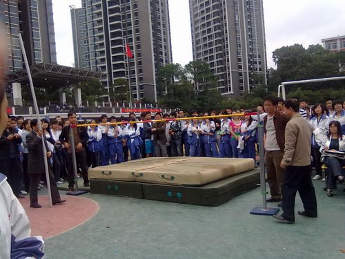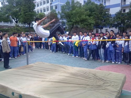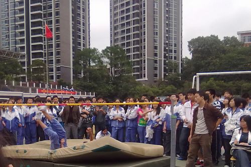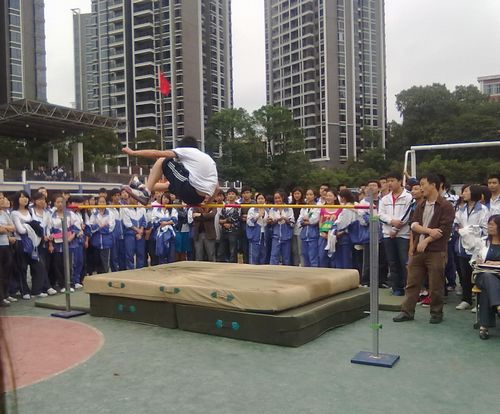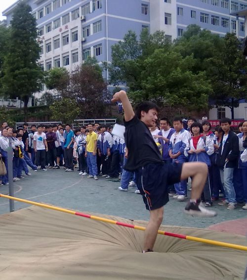 今天下午两点,在田径场上进行了男子跳高比赛,观看比赛同学很多,大家都悬着一颗心在为运动员喊加油。我们来看看跳高比赛的精彩瞬间。