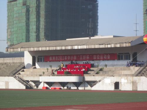 株洲市2011年中小学“三好杯”田径运动会今天上午在市二中举行开幕式。本次运动会由株洲市教育局、株洲市体育局共同举办,项目有田径、武术操、篮球、足球、乒乓球、排球等多个项目,参赛对象是株洲地区中小学生,参加的人数达8808人,参加开幕式的代表对有24个,在开幕式上有二中、各获奖中小学武术操代表队进行了表演。