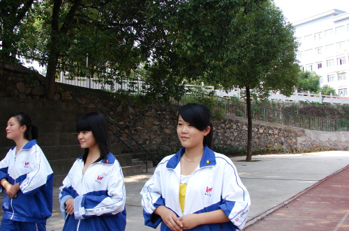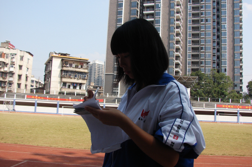 连续的阴雨天到了今天却是艳阳高照。10月14日中午,足球场上出现一队美丽的女孩,她们在干什么?哦,这是新一届礼仪队在招新。