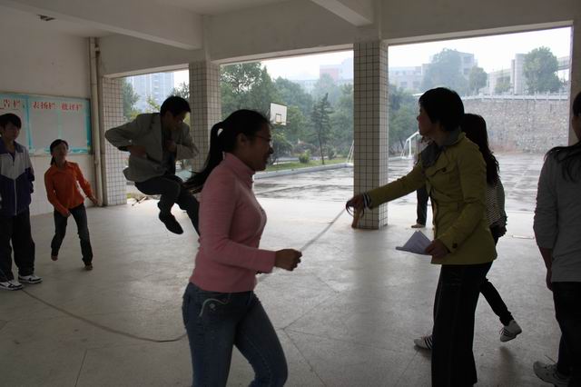 株洲市第十八中学在积极备战株洲市教育系统(城区)教职工运动会。借着全民健身的东风,依教职工运动会的契机,十八中的老师加紧时间锻炼,训练。课余老师与学生一起快乐阳光运动,精神焕发,生龙活虎,老师们训练的是阳光伙伴,3分钟集体跳长绳接力,摸石头过河迎面接力。这些都是集体项目,特别需要团队精神,需要统一思想,十八中从上到下都重视,在工会龙主席直接组织下,开展的有声有色。不止于比赛,重在有锻炼身体的习惯和老师和乐的精神,更有学校好的和谐的氛围。