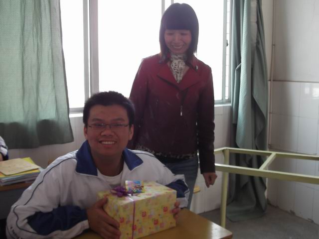 10月31日是益洲的16岁生日,早在半个月以前班上同学就跟班主任贾小红老师商量决定给他办个生日Party。经过半个月的精心筹备,今天上午第五节课这个生日party终于圆满举行。Party分为主持人代同学送祝福、游戏、切蛋糕、总结寄语四个环节。细心的班干部还特意请了益洲同学的爸爸妈妈和在学校与益洲友谊深厚的实习老师。在整个party的过程中益洲积极的参与到游戏的各个环节跟大家玩得不亦乐乎,充分的体会到了集体的快乐与252班大家庭的温暖。最后大家分吃了蛋糕,Party在一个轻松、快乐的氛围中圆满结束。Party结束了,可是252班的温暖不会结束,益洲有一个精彩的世界,我们愿与他分享。