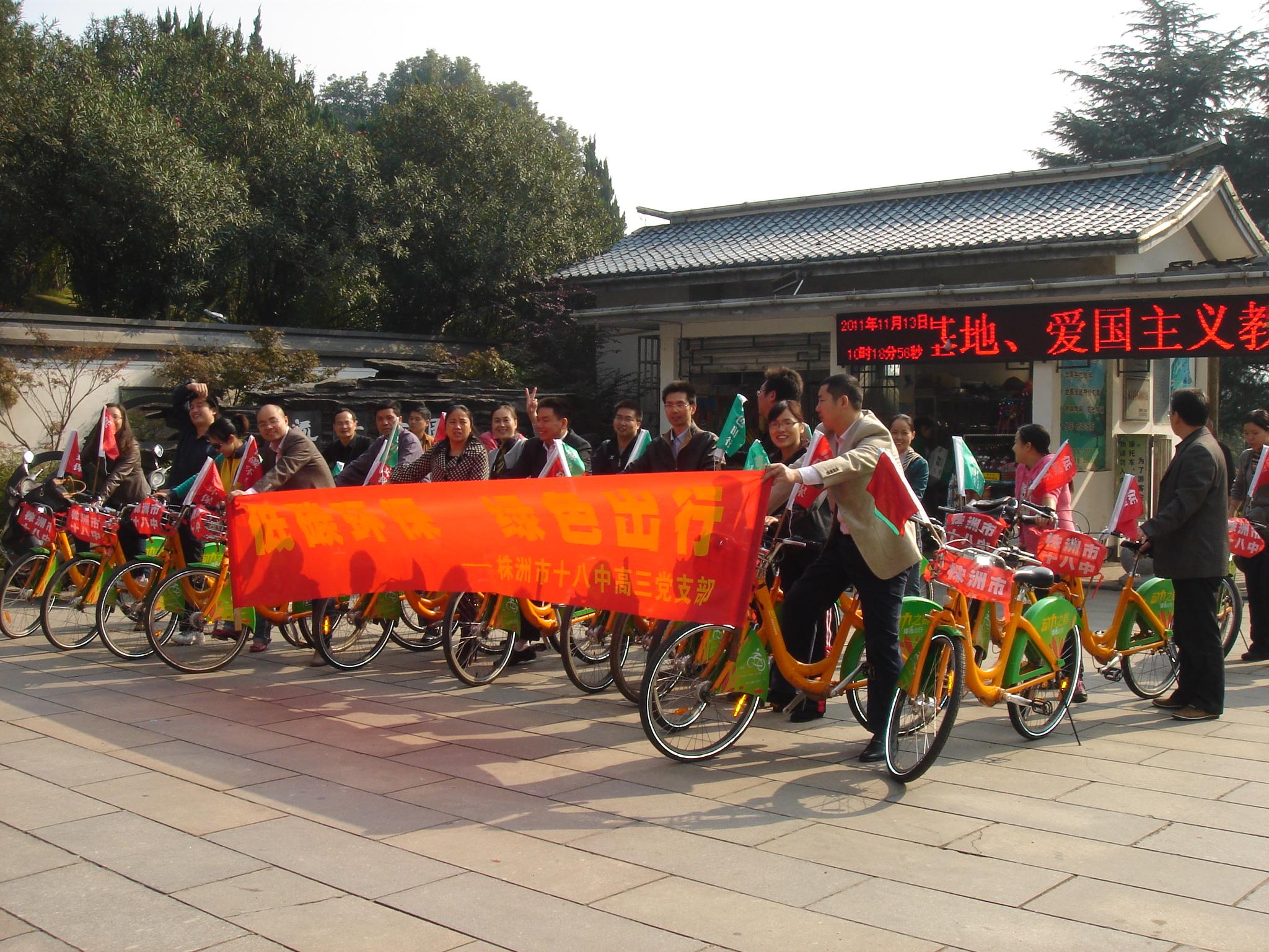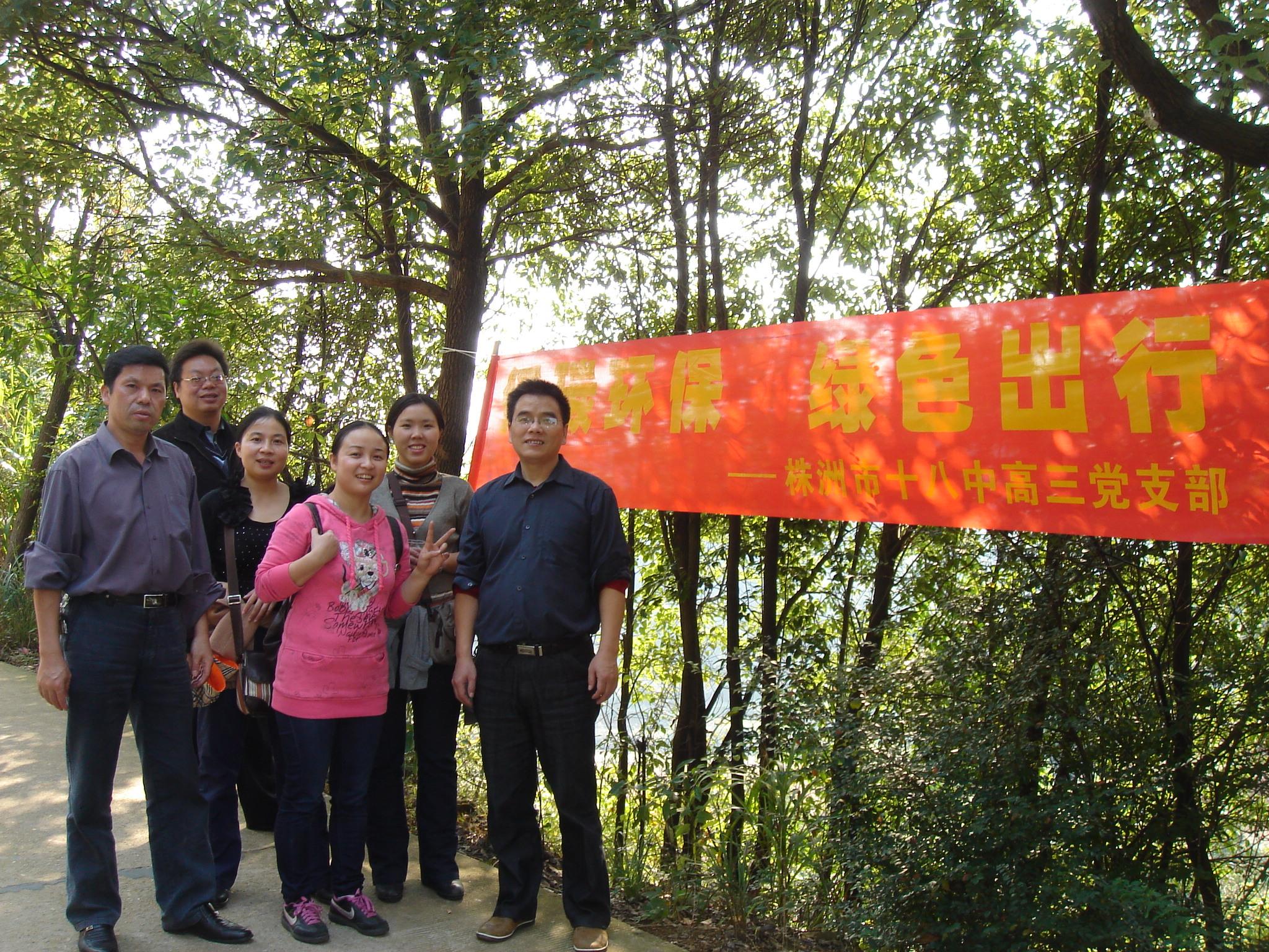 一路上,自行车在飞奔,欣赏着两旁美丽的乡村景色,我们的欢声笑语散满了一路。大约过了一个小时的行程,我们到了目的地——美丽的仙虞岭。虽然此时,大家都已经很累了,但是大家的热情并没有减退,开始了爬山的活动。为了更好的像株洲的人民推行“低碳生活”,我们将我们的活动宣言“低碳环保,绿色出行”挂在了仙虞岭上。