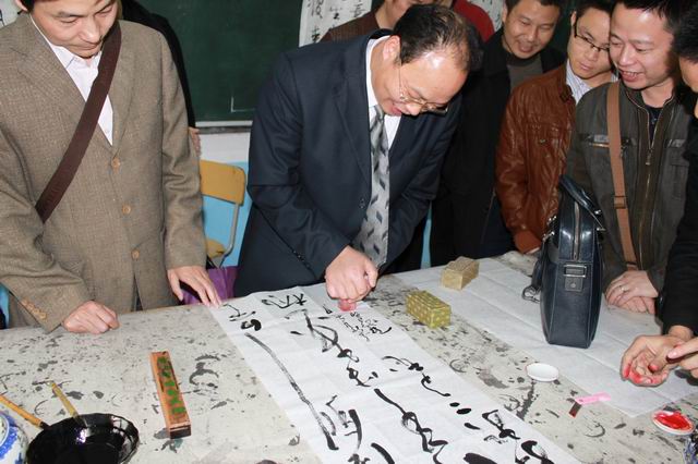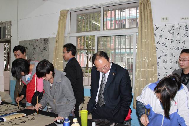 11月26日,十八中聘请湖南著名青年书法家李再湘来校指导工作。李再湘:湖南省中小学教师继续教育指导中心培训班主任,湖南大学、湖南师大硕士生导师,著名特级教师,湖南省著名青年书法家。