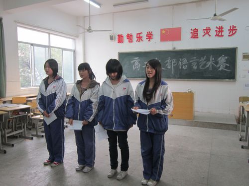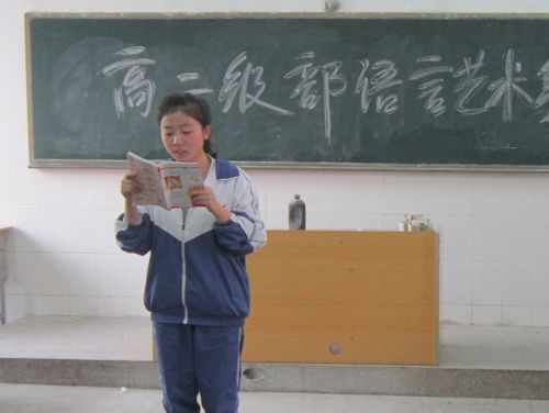 今天第八节课,高二级部在二楼空教室组织了高二语言艺术大赛,参加比赛的共有十五个节目,级部推出其中五个优秀节目,参加学校决赛。进入决赛的同学有C237刘曼灵、言舒晴、祝昆、胡玉洁、唐湘婷、陈真、何乐为、袁玲、唐唯和马向,他们朗诵的是《沁园春 长沙》;C240班王金定;C239李妲媛、罗争妍、刘芝莹、刘佩;C247班颜啸;C242和C248班刘嘉莹和彭巾洁。