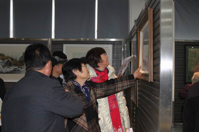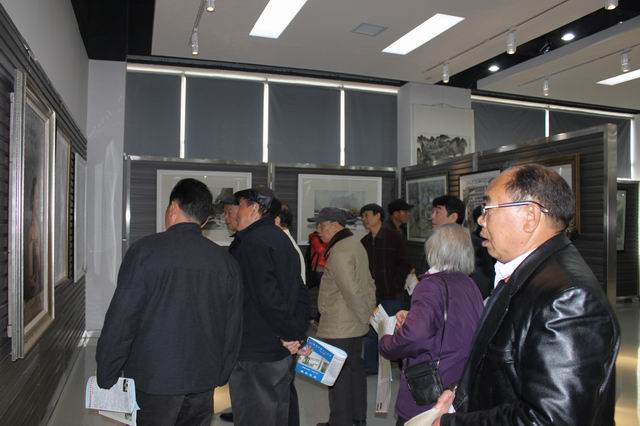 老领导们在展厅观看画展