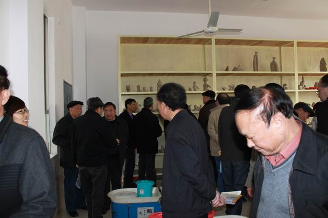 老领导们观看陶艺室,杨电波书记在解说