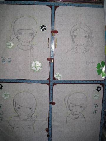 看看254班女生寝室604的同学们,她们是如何布置的?整个房间床单、被子都是统一的,清晰淡雅,衣柜也换上了淡绿的服装,还有每个人的铅笔漫画像,与整个主题也相融合,美的感觉顿时升起。