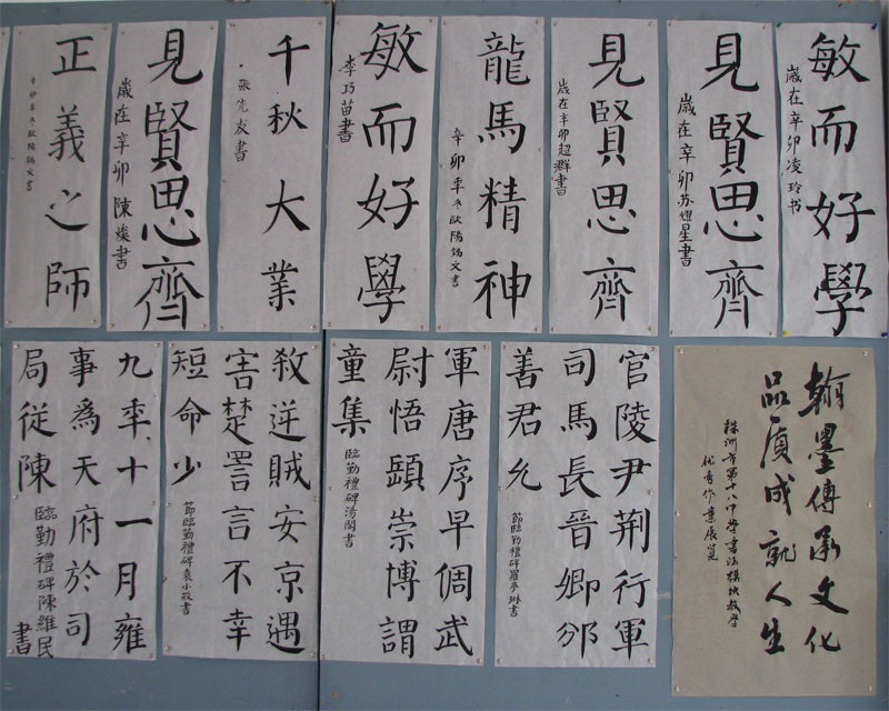 株洲市十八中以“以书启智,以书怡情,以书励志,以书修行,以书健体”为目标,做宽“塔基”,面向高一全体学生普及书法教育,以增强学生对祖国传统文化的认同,传承传统文化;做精“塔尖”,发展学生特长。