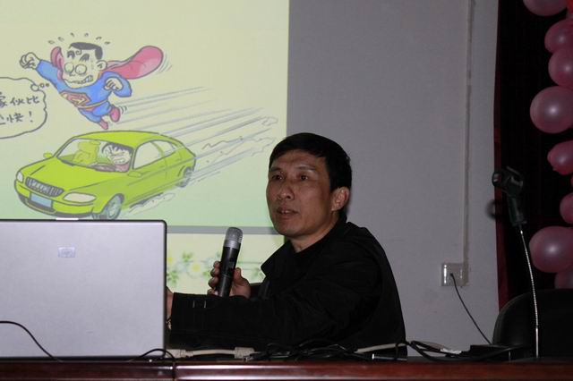 寒假将近,春节来临,家人团聚,走亲访友,喜气洋洋。在这美好时期前,十八中党委杨电波书记组织全校驾驶员(包括摩托车)进行一次安全驾驶知识讲座,旨在提醒所有老师安全出行,谨慎驾驶。会议充满人性的关怀。讲座内容有:通过交通部门提供的《安全警示》来教育大家安全出行的必备要素;通过触目惊心的真实交通事故的视频来教育大家谨慎驾驶的必要性;安全知识系统讲座;安全驾驶应该关注的细节;在讲座过程中,杨书记准备充分,亲自制作课件,找来各种视频音像资料。在讲座中,又旁稽博采,深入浅出,切合自己的实际经历和身边的事例进行讲解。每个驾驶员会后,都非常震撼,获益匪浅。并表示以后一定小心出行,改掉驾驶陋习。并相互的劝告:你开车慢了吗?相信“你开车慢了吗”会成为十八中的见面问候语。