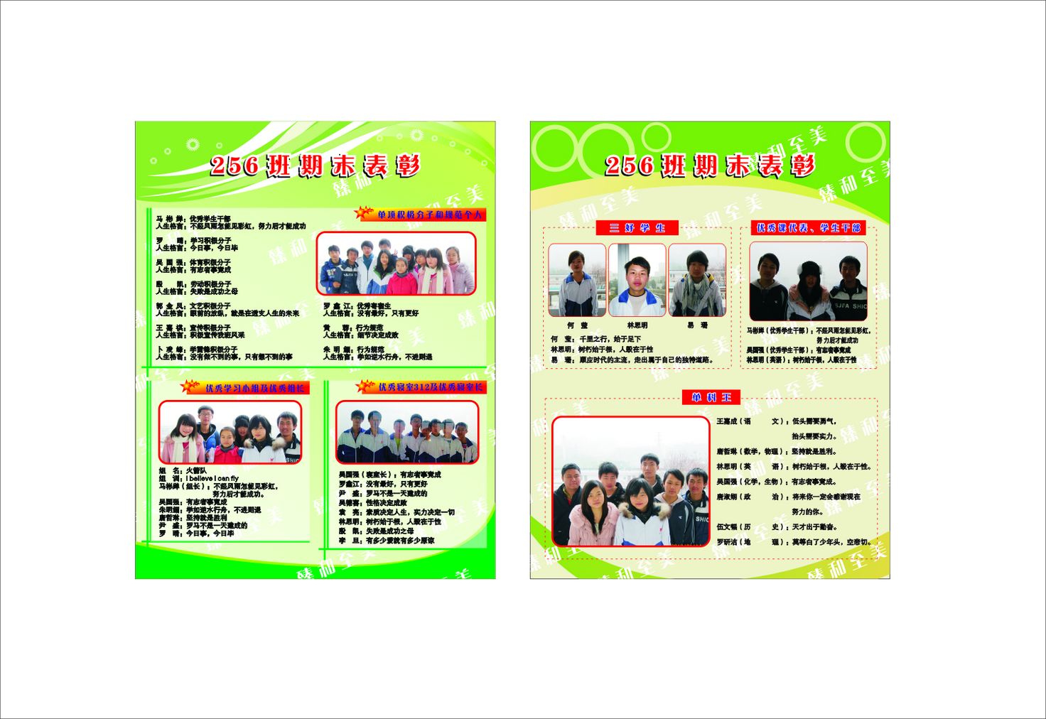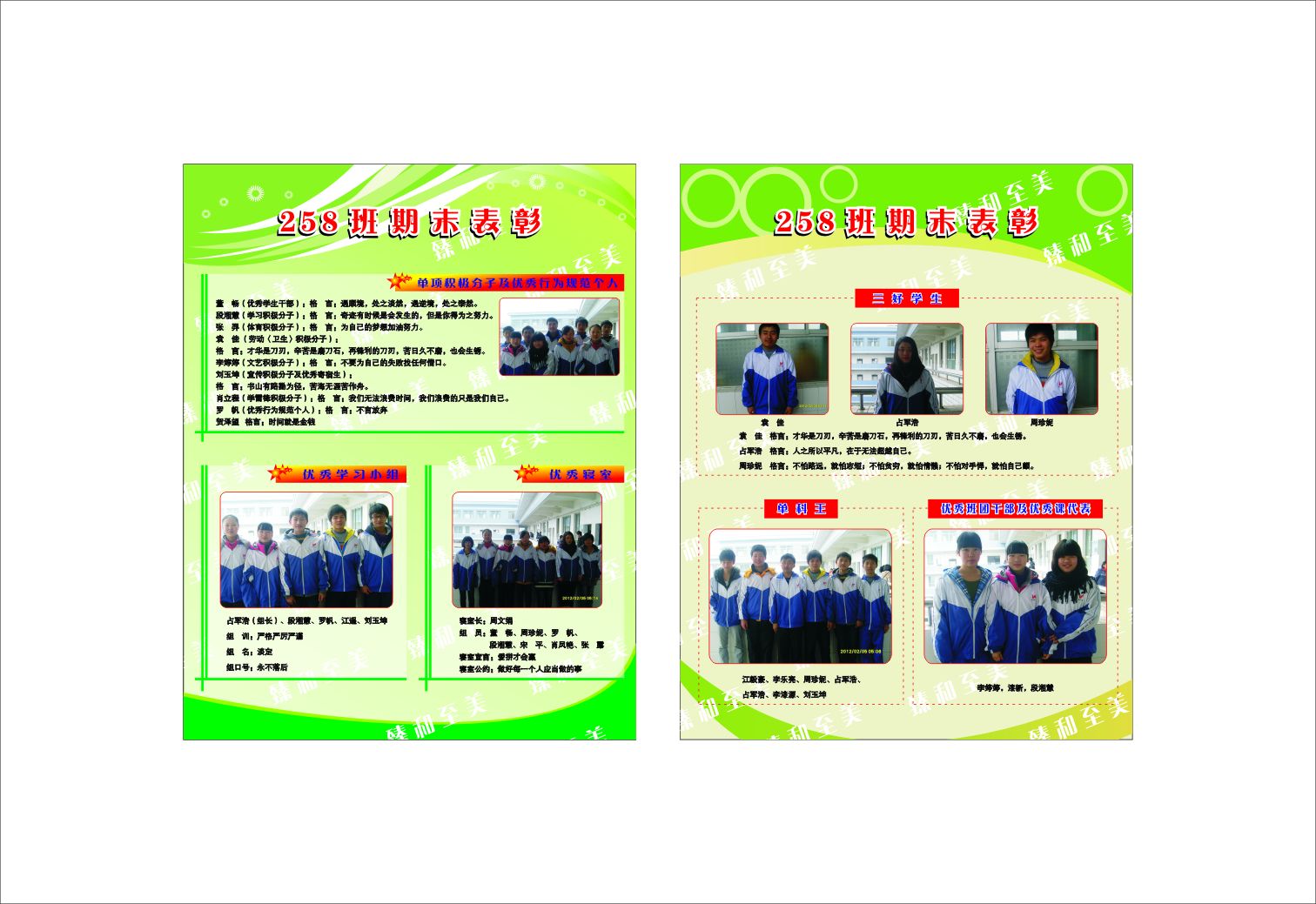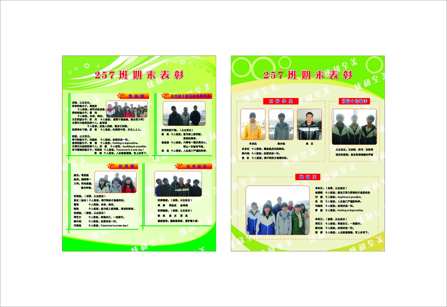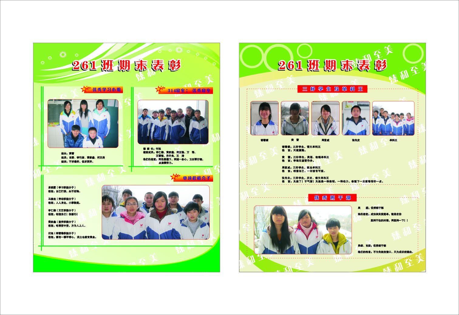 新的学期开始了,为表扬先进,激发同学们在新的学期里潜能,增强同学们的信心,级部把去年下学期同学们获得的各项奖励,如:学校示范班级,学校优秀班级,学校三好学生标兵,学校三好学生,学校优秀干部,学习成绩前十强,各项积极分子等绘制成图,以光荣榜的形式张贴在学校的显眼处,以资鼓励,希望同学们再接再厉,再创辉煌.