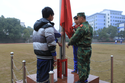 2012年新学期伊始,校团委为强化升旗仪式对青年学生的教育功能,加强升旗仪式的规范化,特聘请军校教官对新一届国旗班成员进行了为期三天的特训。