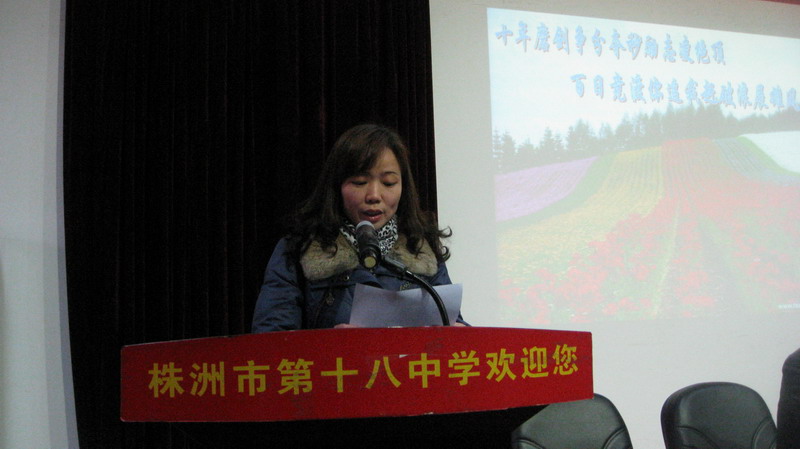 高三223班班主任彭咏莲老师代表毕业班教师郑重表示:为了同学们高考的成功和十八中高考的辉煌,全体高三教师将和所有学生一起,苦战100天,与同学们同甘共苦,同心同德,成为同学们冲刺途中坚定的引路者和保障者。她的发言慷慨激昂,号召全体高三师生全力以赴、团结奋进,以坚持不懈、矢志不渝的精神去创造高考新辉煌,谱写十八中新篇章。
