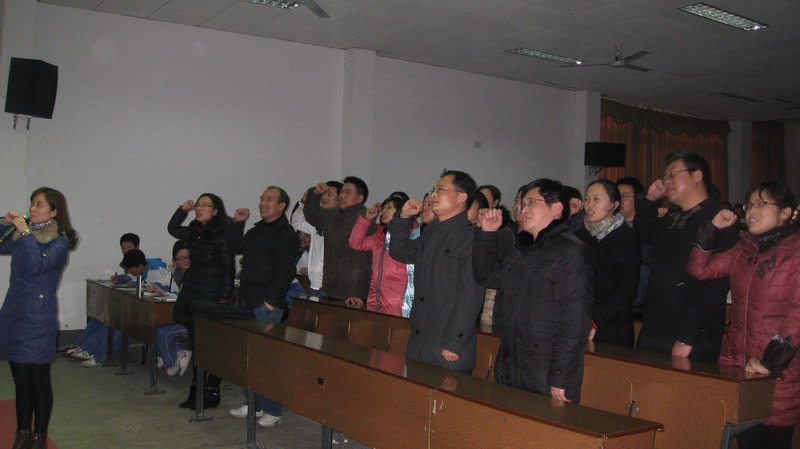最后在座所有的高三教师宣誓,一百天,可以收获累累;一百天,可以突飞猛进;一百天,可以创造奇迹;一百天,可以改变命运。我们全力以赴,并肩作战。相信通过最后一百天的努力,2012我校高考一定会取得更加辉煌的成绩!