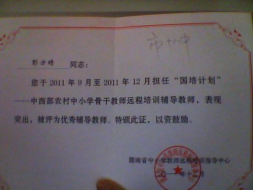高二级部喜讯:彭方晴老师被评为湖南省优秀辅导教师。近两年来,彭老师一直担当“国培计划”--中西部农村中小学骨干教师远程培训辅导教师,连续两年被评为湖南省优秀辅导教师。她所指导的班级--株洲初中生物班去年被评为“特优班级”。