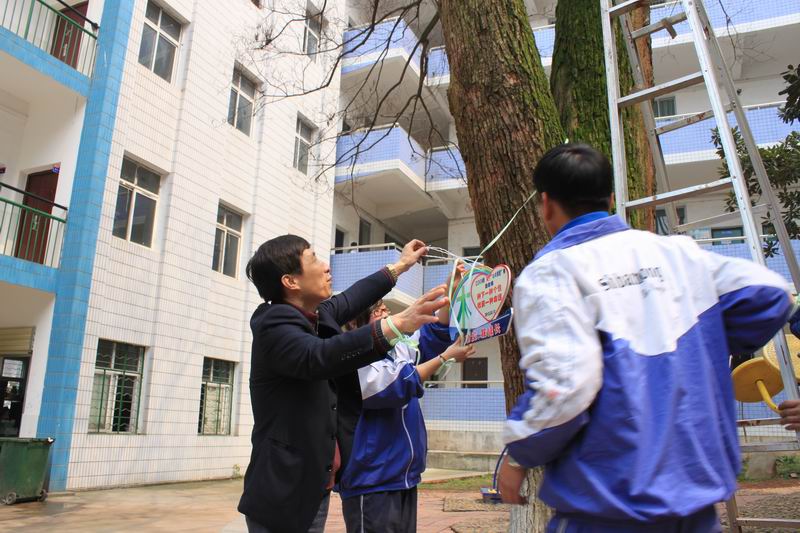 久违的太阳,照艳了十八中的天空,也照彻学生奋发的脸。学生对认领的树进行分班挂牌仪式,各班树牌像旗帜一样冉冉升起,像春天开放的花儿一样艳丽。学生或整齐的排好队伍在班树下庄严宣誓;或围绕班树许下共同的愿望;或盘坐在班树下唱歌跳舞;或写好愿望埋在树底下;或手系各色丝带,注目班树,讲讲心里的话;或在班树下写下班级诗篇,用漂瓶系好在树上;或邀请领导老师在树下常谈理想;或在树下进行才艺表演……,形式多样,不拘一格。为学校的树木文化开了先河,丰富了校园精神生活,同时更加丰富了学校的校园文化。
