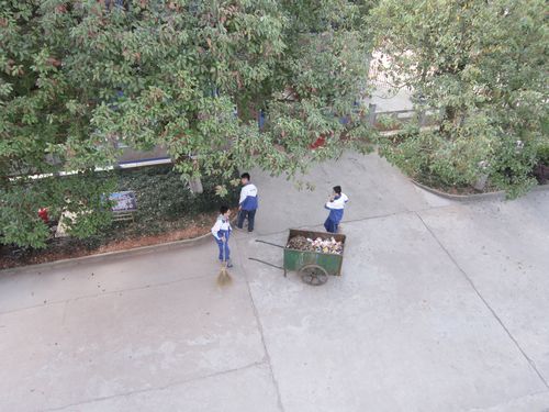 早上七点,进入校园,一路走来,学生们都已经在自己的岗位上。学生春风满面、天空阳光明媚,美丽的校园,有我们的维护,才更显风姿!