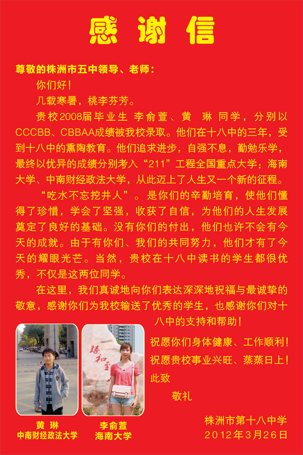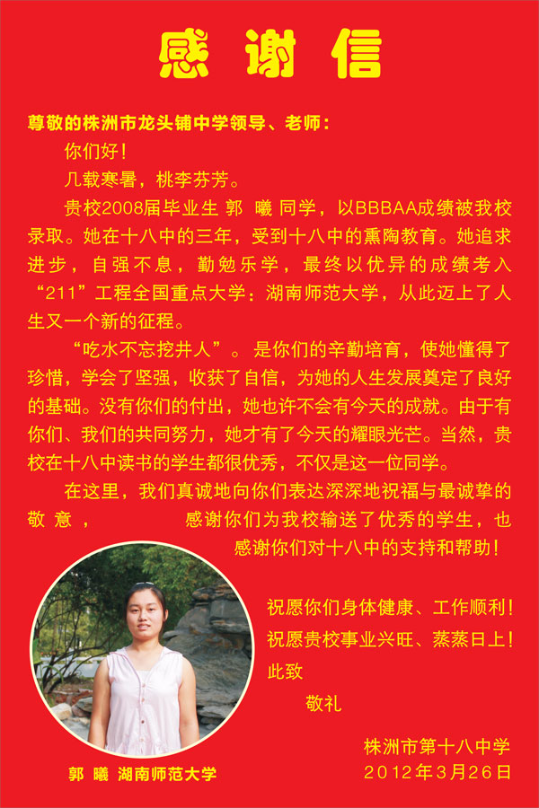 感谢所有支持帮助我们的领导、老师!是你们给了我们责任,给了我们动力,给了我们希望!我们会一如既住,严谨治学,敬业爱生,用我们的真诚,与你们一起共同托起明天的太阳!谢谢!