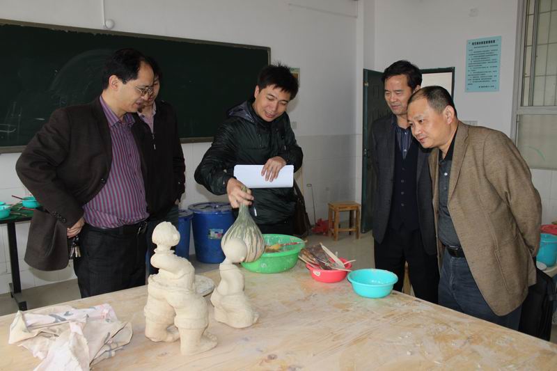 领导一行先参观学校的校园环境,后视察学校的国画、油画、书法、水彩、陶艺、创意等六大模块室,心理活动室,书吧,阅览室,学生公寓,展板,美术学科基地,展厅,两栋美术楼。在参观过程中了解学校的特色和发展状况,并对学校办学理念思想充分肯定,对学校的办学方向和成绩表示赞赏,并对学校大有可为的前景表示出信心。