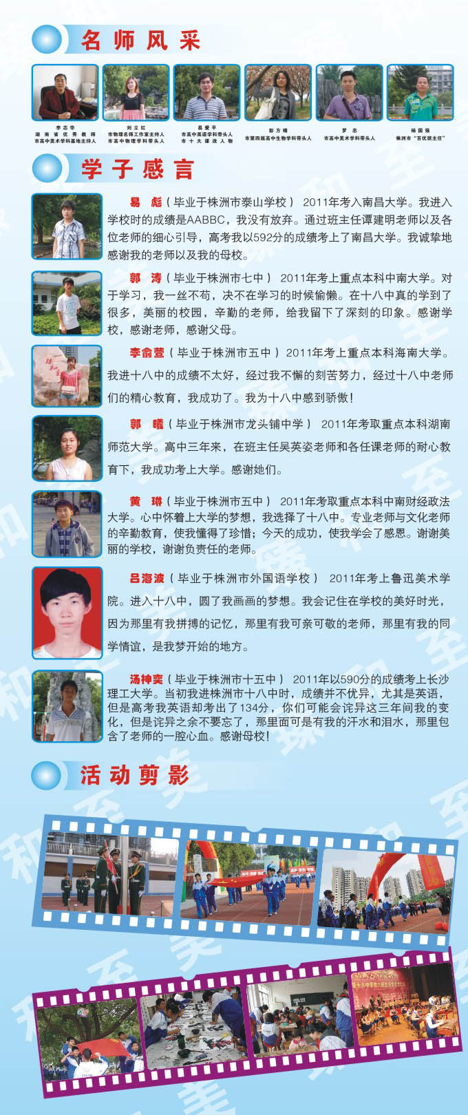 株洲市第十八中学 地址:湖南省株洲市荷塘区大坪路215号 电话:0731-22778018 QQ:33605270