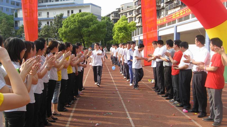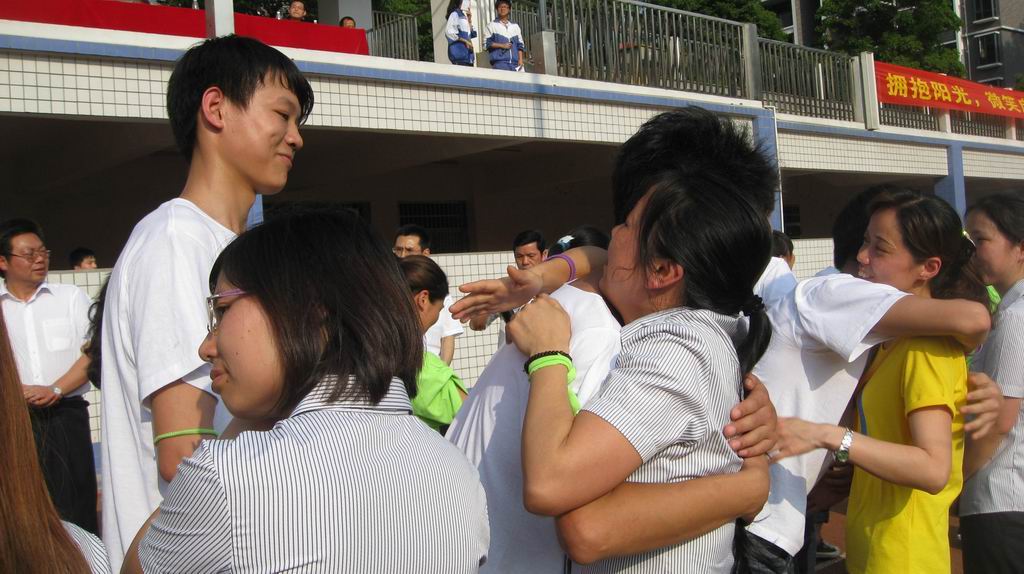 铿锵有力的宣誓声在操场上空久久回荡,这是全体高三学生在成人仪式上的庄严承诺。他们身着亮丽的班服依次向“成人门”走来,高三全体教师致以最热烈的掌声,表示最真挚的祝福。孩子们与老师们亲切的握手、拥抱,感动的泪水融化了师生的心。一幕幕感人的画面,将我的双眼模糊。