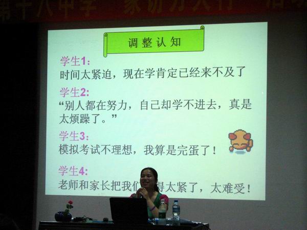 昨天下午5点,株洲市先进教育工作者,株洲市十佳优秀教师,市十八中“苹果树系列成长讲座”特邀专家吴英姿老师在高二年级开讲,为近300正处于学考备战的高二学子带来了非常精彩生动,好玩有趣,收效甚佳的减压增效讲座。