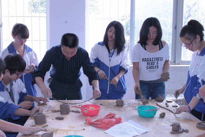 十八中精心安排五堂课:袁旭老师的油画课,李叶华老师水彩课,邓德贵老师国画课,林子老师的书法课,刘三江老师的陶艺课,杨白云老师的创意课。