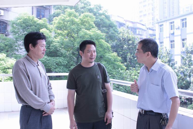 此次活动三巨头在欣然讨论(左为株洲美术教研员张庆斌,中为省教科院美术教研员朱小林,右为株洲市学科基地会长李志华)