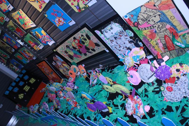 画展中,作品之多,作品之美,作品之真,令人震撼,经过精心布置整个展厅气势磅礴,光怪陆离,光影与色彩辉映,梦幻与真实交织。看到那些画,一定被“稚嫩与真诚”感动至极,感动于小朋友们用自己独特干净的视角去印记纷繁灿烂的世界,以自己纯净的方式去加以表现,美得那样天真,感动于在信墨涂鸦之作中,放飞了孩子自由的心灵,彰显了孩子奇特的想象力和创造力,表达了孩子对生活和世界的真挚的热爱,感动于老师对教育的良心与责任,用真心和善良,一点一滴引导孩子的步步向前,发现培养孩子的兴趣,激发孩子素质能力,为孩子成为“杰出人才”做奠基。