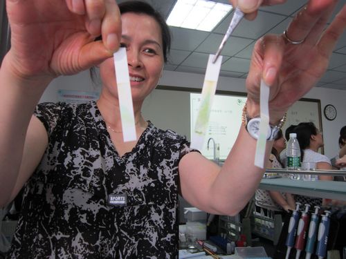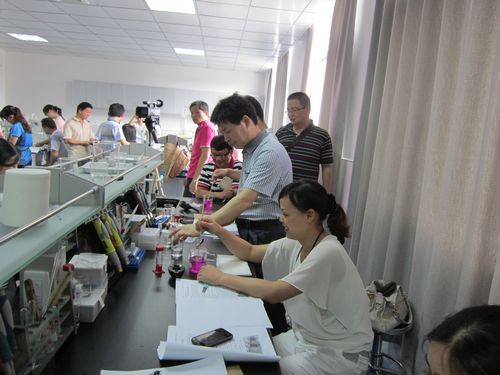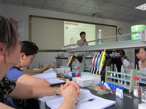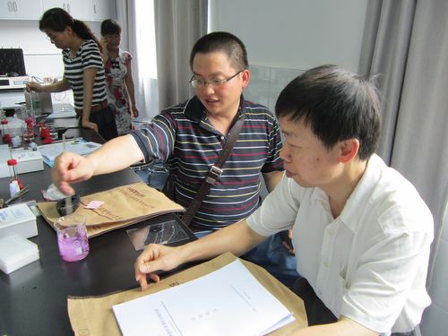 六月19日至21日,株洲市教育技术装备所在南方中学生物学科基地举办了新课程生物学科教师实验技能培训班。我校九位生物教师和生物实验员王晖老师参加了培训。19日主要是对实验老师的准备工作进行的培训,今天开始是老师们的实验培训。上午的内容主要是《实验仪器的使用和维护讲解》、《微量可调移液器的使用》、《叶绿体中色素的提取和分离》以及《细胞大小与物质运输的关系》。中午没有休息,在南方中学学生食堂用过午餐后,十二点半马上又开始上课,下午是《分子生物学专题讲解》、《极速DNA片段体外扩增》、《琼脂糖凝胶电泳及观察》、《菜花DNA粗提取与分离》以及》《酵母细胞的固定化》。虽然很辛苦,但大家都很开心,学能致用。我们学校投资几十万的组培室马上可以让学生实践了!