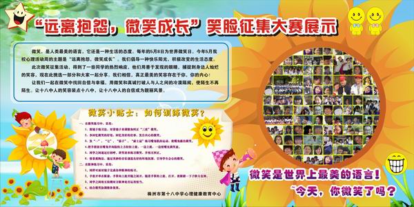 除了以上活动之外,市十八中还举行了心理手抄报,心理电影赏析,心理主题班会等活动。这次心理健康活动月活动时间长,活动形式丰富,参与面广,宣传了心育知识,提升了心育氛围,学生们通过参与心理活动月系列活动,在一种积极发展的心育氛围中,深刻领会了“远离抱怨,微笑成长”的内涵,有意识的调适自己的想法,情绪,增强了适应力,促进了成长,他们还带动身边的人,以一种更加积极的心态生活。