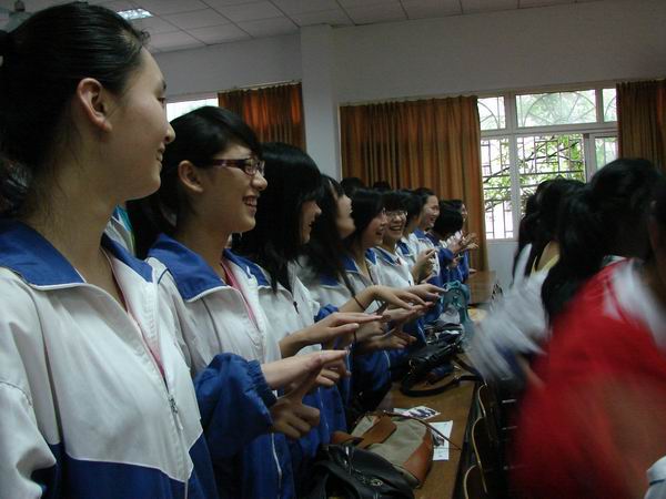 心理知识竞答无疑又是今年最火爆的地了。同学们冲着丰厚的奖品而来,快乐答题,快乐抽题,快乐拿奖,一个个高兴的劲儿,惹人羡慕。 “心理趣味绕口令挑战”,绕口令从“初入江湖”到“天外飞仙”共分七级,前十名都有奖励,同学们争先恐后报名参赛,在旁临阵磨枪,跃跃欲试。有的选手错得有味,引来笑声片片;有的选手憋足气,念得清晰,念得很快,引来掌声阵阵。