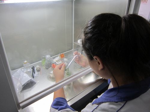 生物学是一门以观察和实验为基本研究方法的实验科学。在生物学的教学中,必须重视对学生实验能力的培养。我校领导和老师们都十分重视对学生实验能力的培养。在条件允许的情况下尽可能多开设实验课程,条件不允许则创造条件来开设。今年,我校又投资了二十多万由北京川布兰生物技术开发有限公司建成了一套组培实验室,可用于植物的组织培养等实验。“植物组织培养”是学生选修教材《生物技术实践》的学习内容,通过组培,能提高学生实践动手能力、科学实验能力、技术推广能力等,也是学生最想操作的一部分。以前由于条件不允许,只能通过PPT来观察,现在组培室建设成功,同学们终于能将理论用于实践,自己亲自动手,将菊花的一个小叶片或一小段芽培育成一棵棵菊花植株,再进行移栽,那将是一种多么神奇的体验呢!今天上午第三节课新高三245班的同学们率先进行了组培实验。