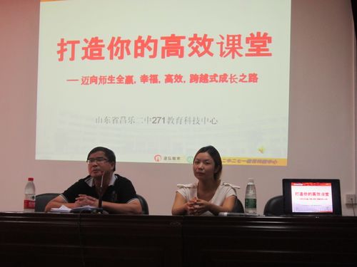 昨天下午在装修一新的多媒体教室,学校请来了昌乐二中271教育科技中心的孙自娟老师来学校作“打造你的高效课堂--迈向师生全赢、幸福、高效、跨越式成长之路”的专题讲座。