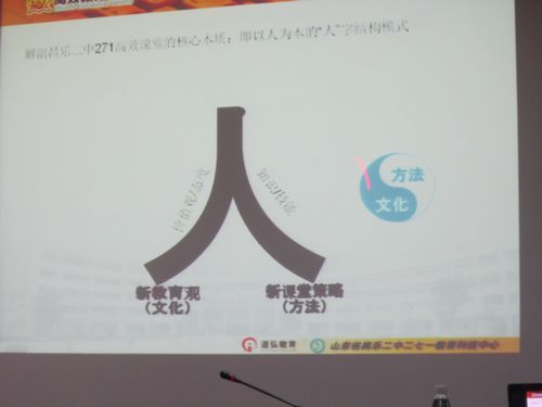 孙老师的讲座一改往日听讲座、做笔记的严肃氛围,以她饱满的热情、平易近人的微笑拉开昌乐二中271课堂模式,让老师们耳目一新,饶有兴趣进入高效课堂角色的体验。
