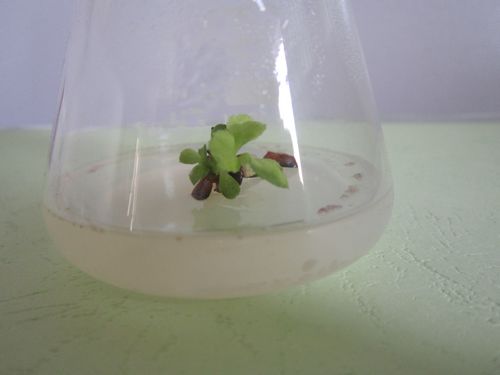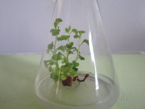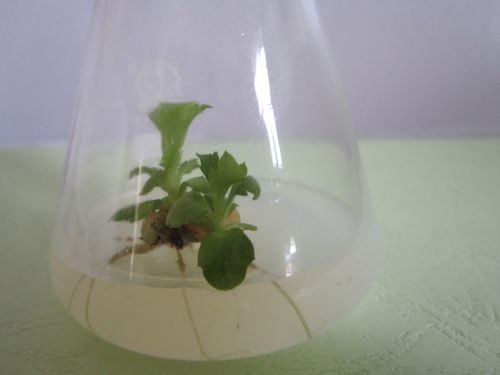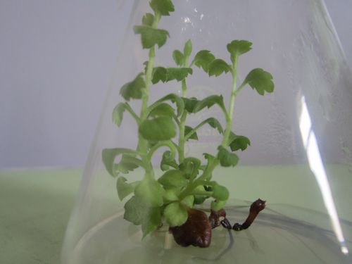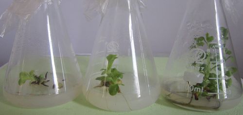 2012年6月19日至21日,株洲市教育技术装备所在南方中学生物学科基地举办了新课程生物学科教师实验技能培训班,我校九位生物教师和生物实验员王晖老师都参加了实验培训,培训回来时,正值我校高二学生开始学习选修内容《植物细胞工程》,其中植物组织培养(简称组培)是学生要掌握的一门技术。以前由于条件不允许,这类操作性的实验往往只能是纸上谈兵,要求学生死记硬背,记住其原理、过程、方法、结果等等,而现在我们学校花费了近二十万成功建成了组培室,老师们又在学科基地经过了科学培训过程,让学生不能亲自实验动手操作的所有问题都迎刃而解。在上学期六月底理科各班都顺利进行了组培实验,主要是以菊花为材料。本学期开学,易彦老师惊喜地告诉各位老师:实验已见成果,利用菊花叶片上剪取下来的0·25平方厘米的小叶片已发育为一棵棵菊花小植株。我们的学生组培实验成功了!以下是菊花组织培养的成果。