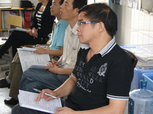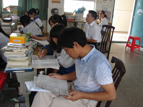 9月20日上午第二节课,像往常一样学习的高三241班的同学们发现:今天教室里听课的多了5个人。他们时而侧耳倾听,时而若有所思,时而埋头记录,时而走下座位观看同学们的自主学习和合作讨论。他们是谁?在干什么?哦,原来,这是十八中课堂督评小组理科组的课堂督评员在进行课堂督评呢。