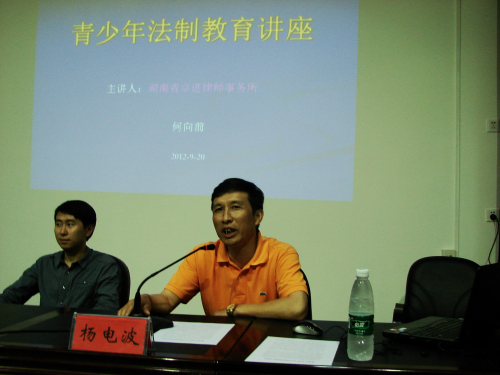 近年来,随着网络、家庭、社会等多种因素的影响,青少年违法犯罪问题逐渐凸现出来,已经引起了全社会的重视。营造关注青少年违法犯罪问题、关心青少年健康成长的良好氛围,加强青少年学生法制教育,增强遵纪守法意识显得尤为重要。团市委组织开展的这场法制教育讲座十分及时,也非常必要。活动的开展,将帮助我校青年学生掌握与自己学习、生活密切相关的法律知识,增强其自护意识和防范能力,使青年学生养成学法、知法、守法的良好习惯,为打造平安株洲、构建文明和谐株洲作出新的贡献。